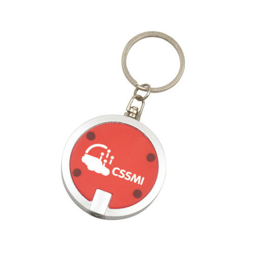 產品描述: 圓形塑料大身,銀色外殼及按鈕,帶金屬鑰匙扣,頂部為高亮度白色LED燈