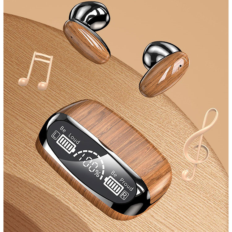 迷你大屏電量顯示木紋耳機