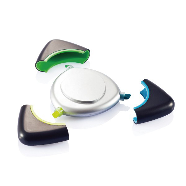 XDDESIGN 專利設計,三角形亞光外殼,黃綠藍三色馬克筆帶蓋子